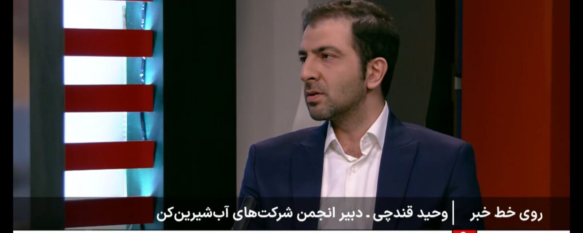 به گزارش روابط عمومی و امور بین الملل انجمن شرکت های آب شیرین کن ، در برنامه زنده «روی خط» شبکه خبر که روز چهارشنبه ۱۵ مرداد برگزار شد، آقای دکتر وحید قندچیزاده، دبیر انجمن شرکتهای آب شیرینکن، به تشریح وضعیت صنعت آب شیرینکن کشور پرداخت.