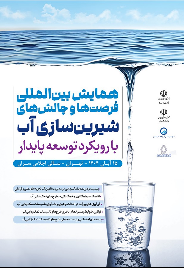 به گزارش روابط عمومی و امور بین الملل انجمن شرکت های آب شیرین کن ، وحید قندچی زاده ، دبیر انجمن ، از برگزاری همایش بینالمللی فرصتها و چالشهای شیرینسازی آب با رویکرد توسعه پایدار خبر داد و افزود : این همایش به همت انجمن آبشیرینکن ، وزارت نیرو و وزارت صنعت، معدن و تجارت در تاریخ ۱۵ آبان ۱۴۰۴ در سالن اجلاس سران تهران برگزار خواهد شد.